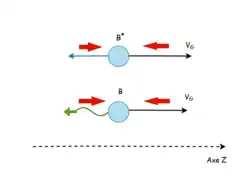 - ↑ Les photons ne peuvent aller directement de la source au détecteur à cause d'un bloc de plomb placé entre les deux. En l'occurrence, ils sont émis vers un anneau de samarium entourant le photomultiplicateur, et dans lequel aura lieu l'émission résonnante.