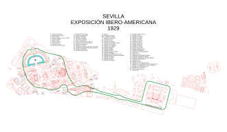 Séville est un des deux sites de l'Exposition générale espagnole de 1929. En parallèle, Barcelone propose une Exposition internationale[b 1].