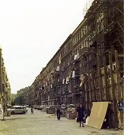 Les immeubles sur la rue ont été construits selon les plans de James Hobrecht à la fin du XIXe siècle. La plupart des immeubles ont été épargnés par les bombes pendant la Seconde Guerre mondiale et certains (no 15–19) conservent leur aspect de cités-casernes de style néo-Renaissance prévues pour les ouvriers. Bien que le gouvernement de RDA ait prévu de les démolir pour les remplacer par des Plattenbaus, le projet fut abandonné le sous la présidence de Hans Modrow[1].