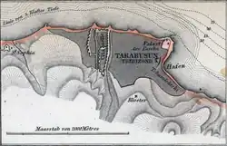 En 1838, le voyageur anglais Edmund Spencer décrit Trébizonde comme le port le plus prospère de la mer Noire, relié à Constantinople par une ligne de navires à vapeur. Le pont du navire est bondé de représentants de toutes les nations de l'empire : musulmans, Grecs, Arméniens, Juifs karaïtes, Juifs talmudiques et quelques « Francs » (Européens)[1]. Le port qui compte trois bassins, Korata, Platana et Tchumlichki, est assez mal protégé bien que l'administration ottomane projette d'y construire des môles et des docks : le seul môle existant est romain, attribué à l’empereur Hadrien. La ville est d'aspect entièrement oriental avec des rues étroites, des mosquées et des bazars mais les « Francs » ont construit leur propre village à proximité. Les boutiques vendent toutes sortes de produits manufacturés occidentaux, surtout britanniques. Les réformes du tanzimat commencent à répandre l'usage des articles européens ainsi que le port du fez[2].