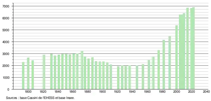 - ↑ Fiches Insee - Populations de référence de la commune pour les années 2006, 2007, 2008, 2009, 2010, 2011, 2012, 2013, 2014, 2015, 2016, 2017, 2018, 2019, 2020, 2021 et 2022.
