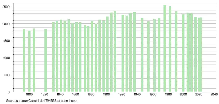 - ↑ Population municipale de référence en vigueur au 1er janvier 2025, millésimée 2022, définie dans les limites territoriales en vigueur au 1er janvier 2024, date de référence statistique : 1er janvier 2022.