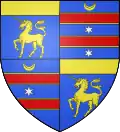 Écartelé: aux 1 et 4 : d'azur, à la licorne passante d'or au chef du même ; aux 2 et 3 : d'azur, à 2 fasces d'or remplies de gueules et accompagnées d'un croissant d'or en chef et de 2 étoiles d'argent, une en abîmes l'autre en pointe |