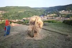 Les villageois de Contz-les-Bains en liaison avec la ville de Sierck-les-Bains, répètent chaque année au mois de juin cette cérémonie, un rite bien étrange qui remonte à la nuit des temps. Cette coutume est une survivance d'un culte solaire très ancien et devenu rare de nos jours. Beaucoup d'historiens citent dans leurs travaux la roue enflammée du Stromberg[18].