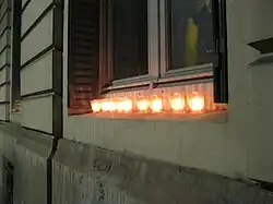 En 2015, pour la première fois de son histoire, la Fête des Lumières est annulée pour des raisons de sécurité liées aux attentats survenus le 13 novembre en Île-de-France. Cette annulation, évoquée dès le lendemain des attentats[16], est confirmée le 19 novembre lors d'une conférence de presse réunissant le maire de Lyon Gérard Collomb et le préfet du Rhône Michel Delpuech ; les festivités sont remplacées par plusieurs manifestations, autorisées par le préfet, rendant hommage aux victimes de ces événements tragiques, à travers la pose traditionnelle de lumignons sur les fenêtres[17],[18],[19]. La procession et montée aux flambeaux vers la basilique Notre-Dame de Fourvière, qui a lieu chaque année, est par ailleurs maintenue[20]. Si la tradition se perdait depuis plusieurs années à cause du départ de nombreux Lyonnais et du fait des nombreux touristes venant assister à cet événement, cette édition spéciale permit de revoir de nombreuses fenêtres illuminées, l'éclairage public du centre-ville étant éteint afin d'améliorer leur visibilité. Le diocèse lance également pour les 7 et 8 décembre l'opération « Merci Marie »[21].