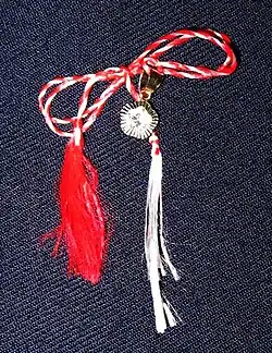 Quoi qu’il en soit, les martenitsi/mărțișoare sont aujourd’hui des talismans que l’on épingle à la poitrine, portés pendant huit jours, formés d’un fil rouge et d’un fil blanc tressés ensemble, auquel on peut attacher des objets décoratifs : des fleurs ou des animaux en bois, en céramique, en verre ou en métal[8],[9].