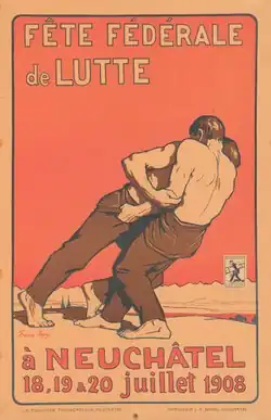 La lutte suisse et le lancer de la pierre, dont les origines proviennent du bas Moyen Âge, sont présents lors de la Fête fédérale de gymnastique de 1855 à Lausanne en tant que « gymnastique nationale »[4]. L'association fédérale de lutte suisse, créée en 1895, organise désormais les différentes manifestations de lutte, dont les plus importantes sont les « nationale » et la fête d'Unspunnen. La première fête fédérale de lutte eut lieu à Bienne en 1895.