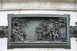 Fête nationale du 14 juillet 1880, haut-relief en bronze de Léopold Morice, Monument à la République, place de la République, Paris, 1883.