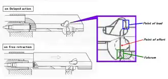 | Mode d'action | Arme à culasse non calée à masse additionnelle Levier amplificateur d'inertie |