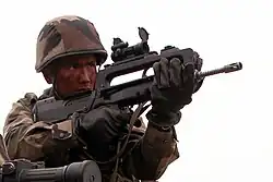Le FAMAS (ou FA-MAS, Fusil d'Assaut de la Manufacture de Saint-Étienne)[Note 1], désigné comme « fusil d'assaut[1] de 5,56 mm modèle F1 MAS » dans l’armée française, est un fusil d'assaut français de calibre 5,56 × 45 mm Otan[1] de type bullpup, initialement fabriqué par la Manufacture d'armes de Saint-Étienne.