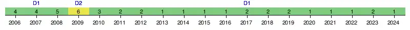 | 1978 | 2e | 7e | 41 | 38 | 11 | 19 | 8 | 38 | 37 | +1 | 32es de finale |