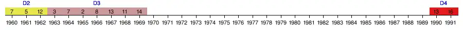 1960-1969 1990-1998 2009-2020 |