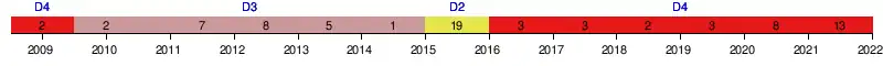 | 2019 | 2e | 8 | 6 | 2 | 2 | 2 | 8 | 6 | +2 | ||
