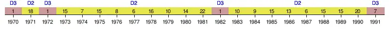 | 1970 | 3e Zone 3 | 1er | 57 | 42 | 24 | 9 | 9 | 61 | 37 | +24 | Premier tour |