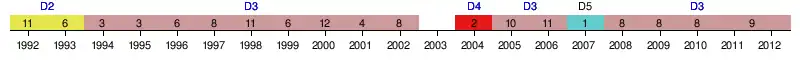 1948-1949 1957-2002 2005-2006 2008-2012 |