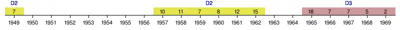 | 1958 | 2e Zone 6 | 11e | 23 | 26 | 8 | 7 | 11 | 28 | 31 | -3 | Deuxième tour Q |