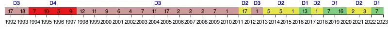 1996[23] 5e 38 24 12 2 10 32 29 +3 256es de finale