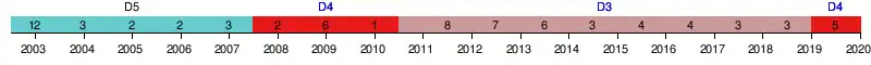 | 2020 | 4e Privoljié | 5e | 11 | 10 | 3 | 2 | 5 | 10 | 26 | -16 | — |