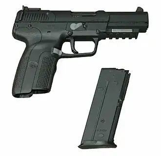 Le FN Five-seveN est un pistolet semi-automatique simple action ou double action de conception belge fabriqué par la FN Herstal. Il est chambré pour une munition très particulière puisqu'il s'agit de celle utilisée dans le P90 dont il est l'arme secondaire toute désignée.