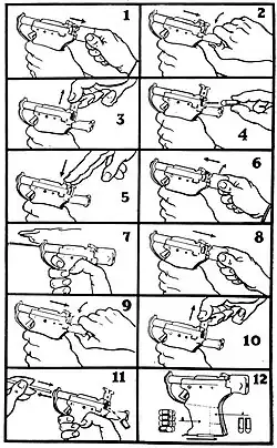 Le Liberator était conditionné dans une boîte en carton, avec une réserve de dix cartouches de .45 ACP, un tourillon en bois pour extraire l'étui vide, et une feuille d'instructions sous forme de bande dessinée montrant comment charger l'arme et l'utiliser[1]. L'excédent de munitions peut être stocké dans la poignée du pistolet.