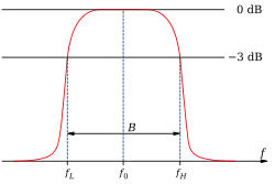 Q peut aussi être défini comme le rapport de la fréquence propre (fréquence à laquelle le gain est maximal) à la largeur de la bande passante de la résonance du système :