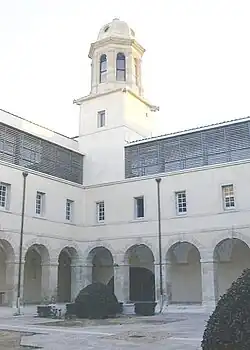 La faculté de droit aménage en 1956 dans les anciens bâtiments du couvent des sœurs de la Visitation Sainte-Marie qui datent du XVIIe siècle (1631)[38], de même que la chapelle (à l'angle de la rue de l'Arc-des-Mourgues). Le plan du couvent se présente sous la forme d'un grand bâtiment carré, d'ordonnance et d'élévation classiques sévères. Autour du cloître central se développent trois corps de bâtiments, des cellules ainsi que des salles de classe. En 1680, date à laquelle les travaux du couvent sont achevés, cet ensemble religieux s'agrandit par l'adjonction d'un grand jardin qui jouxte désormais la Porte de la Blanquerie.