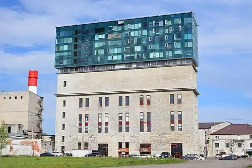 Le bâtiment fait partie d'une ancienne usine de cellulose et de pâte à papier dont le bâtiment le plus remarquable est la haute et volumineuse chaufferie construite en pierre en 1926 et conçue par l'architecte Erich Jacoby. Une partie de six étages avec des appartements a été ajoutée au-dessus de l'ancienne chaufferie, sur les murs en pierre[1].