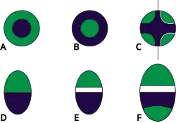 Dans une tige ou une racine, le xylème se trouve plus proche du centre tandis que le phloème est plus externe. Dans une feuille, la surface adaxiale (faisant partie de l'axe ligneux) est habituellement l'extérieur, avec le côté abaxial («en dehors» de l'axe) vers l'intérieur. C'est la raison pour laquelle on trouve les aphides sur le côté intérieur d'une feuille plutôt qu'à l'extérieur, car les sucres produits par la plante, qu'ils consomment, sont transportés par le phloème qui se trouve sur le côté intérieur.