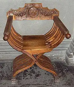 Il est muni d'accoudoirs mais ne possède pas de dossier[2]. Prenant la forme d'une croix de saint André plus ou moins stylisée[1], il est recouvert d'un coussin à la couleur liturgique du jour[3].