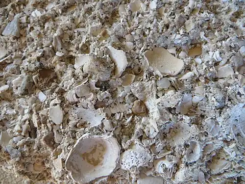 Ce dépôt sédimentaire marin est souvent du Cénozoïque et disséminé sur de vastes étendues. Formé de débris de coquilles, parfois entières ou partiellement brisées, ce calcaire d'accumulation biodétritique est plus ou moins consolidé, pouvant former une roche compacte après une cimentation argilo-siliceuse fine et dense, mais reste généralement une roche meuble et friable car il est mélangé communément à du sable et de l'argile.