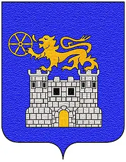 L'arme des Albrizzi se compose d'un château maçonné d'argent à deux tours de même, sur lesquelles marche un Lion d'Or, qui tient une roue de même métal avec le pied droit de devant, le tout en champ d'azur.