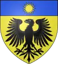 D'or, à l'aigle de sable, au chef d'azur, ch. d'un soleil d'or[12]. Différences entre dessin et blasonnement : le soleil est représenté non figuré.
