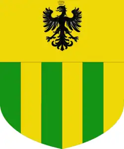 Les armes des Curti sont coupées : au premier, parti d'argent à un monstre à deux têtes d'azur et de gueules, avec une Tour maçonnée d'argent et surmontée d'une Aigle éployée de sable ; au second, barré de gueules et d'argent de six pièces. Le tout sous un chef d'empire.[réf. nécessaire]