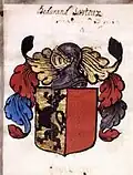 Alias : parti, au 1 d'or au lion couronné, le tout de sable, au 2 de gueules. (1635)[3] |