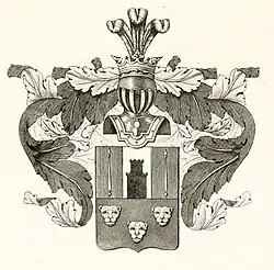 - ↑ Le dessin des armes de la famille (branche aînée) remonteraient à Ignace II, et rappellerait une lointaine ascendance serbe (= de sinople à trois têtes de léopard d'or, de face 2 et 1 ; ce sont aussi des armes parlantes par голова, le chef ou la tête, en russe) ; la tour du haut accostée de deux lances symbolise la défense de Moscou où s'illustra Ignace Tarassovitch. Toutefois, leur enregistrement remonte au tout début du XIXe siècle.