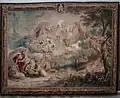 Tapisserie d'Évrard Leyniers, Neptune fait naître le cheval en frappant la terre de son trident, d'après un carton de Jacques Jordaens, vers 1650-1660.
