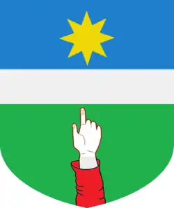 Les armes des Lin se blasonnent ainsi d'un écu coupé d'azur et de sinople par une bande ou cotice d'argent, l'azur chargé d'une étoile d'or, le sinople d'une main droite qui montre naissante de la pointe de l'écu.