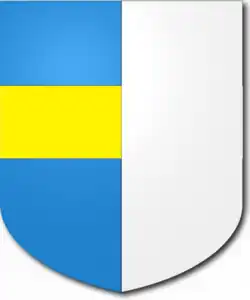 Marco Manolesso ajoute cet écu au sien (azur plein avec une fasce d'argent) à son retour de Candie.