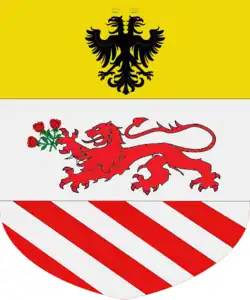 D'autres armes sont tiercé en fasce au 1 d'or à l'aigle bicéphale de sable chaque tête couronnée du champ au 2 d'argent au lion léopardé de gueules tenant de sa patte dextre trois roses du même au 3 bandé de gueules et d'argent.