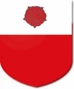Les armes des Ruzzini se blasonnent ainsi : de gueules au chef d'argent chargé d'une rose percée aussi de gueules ou en 1310, coupé, au 1, d'argent, à une rose de gueules, boutonnée d'or, au 2, de gueules plein.