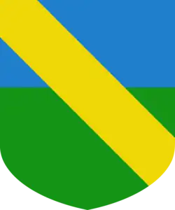 - d'azur coupé de sinople avec une bande d'or ;