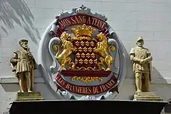 | Blasonnement | De gueules, semé de fleurs-de-lis d'or. Supports: deux hermines. Casque taré de profil orné de ses lambrequins et sommé d'une couronne de comte[1]. | |