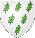 | Blasonnement | D'argent à une bande de gueules chargée d'un coq d'argent, becqué, membré, barbé d'or, accompagnée en chef d'une merlette de sable. | |