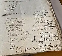 - ↑ Elle se remaria à Louis François Elie Camus de Pontcarré. Cote AN T//*/483/2.