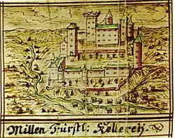 - Château de Millen, Selfkant (de). Les fondations remontent au IXe siècle. Il fut vendu à Thierry II de Heinsberg (1258-1303) en 1282 par Arnold de Millen et fut détruit en partie par le duc de Brabant en 1287 lors du conflit Gueldre-Brabant. Il passa ensuite entre les mains de différentes familles jusqu'en 1650 où le duc de Juliers, Wolfgang de Palatinat-Neubourg propriétaire du fief donna l'autorisation de le détruire.