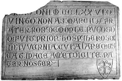 - Robert de Montrognon, prieur d'Auvergne (de 1262 à 1277) pour l'ordre des Hospitaliers de Saint Jean de Jérusalem. Il passa un accord au mois d'avril 1266 avec le seigneur de Châteauvillain et de Luzy, au sujet de la justice des lieux d'Anglures et de "Marciaco" et de divers droits réclamés sur l'hôpital d'Anglures[9]. Il mourut en 1276 et fut enterré à l'église Saint-Jean-de-Ségur à Montferrand[8] où fut placée une plaque qui, après la disparition du tombeau a été conservée et se trouve désormais au musée de Clermont-Ferrand.