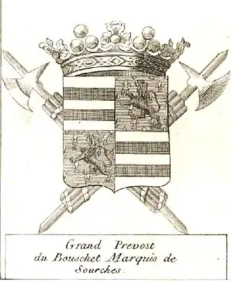 De 1643 à 1789, les charges de prévôt de l'hôtel du roi et de Grand prévôt de France, réunies en la même personne, se transmirent de père en fils dans la famille de Sourches.