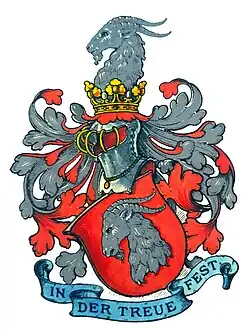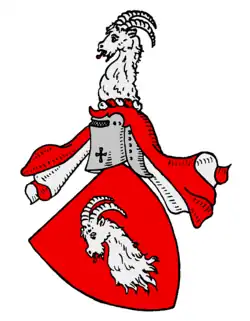 En rouge la tête et le cou d'un bouquetin argenté. L'image du bouclier sur le casque avec des lambrequins rouges et argentées. L'emblème orne souvent les armoiries avec la devise « Trouver dans la fidélité ». Les von Kameke (de), qui sont probablement de la même famille, portent le même écusson[4].