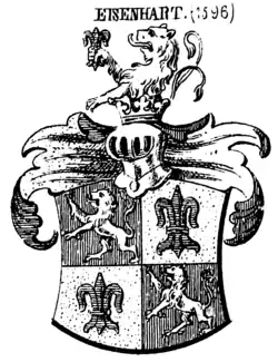 - Anoblissement prussien avec amélioration des armoiries le 2 octobre 1786 à Berlin pour Johann Friedrich Eisenhart (1733-1804), propriétaire foncier à Bahrensdorf près de Beeskow, conseiller de guerre royal prussien et rentier de la caisse de l'artillerie générale, plus tard président de la police et de la ville de Berlin[1]
