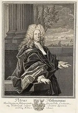 La lignée de la famille commence avec Adam Homann (mort en 1632), maître artisan à Könnern, qui apparaît dans des documents à partir de 1611. Son petit-fils Peter Hohmann (de), né le 26 juillet 1663 à Könnern, est l'ancêtre de la branche noble. Il s'enrichit en tant que commerçant à Leipzig et devient conseiller royal polonais et électoral saxon. C'est ainsi qu'il possède plusieurs domaines de chevaliers, entre autres Hohenprießnitz, Crostewitz (surdaté par la mine à ciel ouvert d'Espenhain (de)), Großstädteln, Kleinstädteln, Großdeuben, Probstdeuben, Wallendorf (Luppe)[1] Lichte (à partir de 1709)[2]. Le 2 mars 1717, à Vienne, il reçoit la chevalerie impériale avec le titre d'Edler von Hohenthal et une augmentation des armoiries. Peter Hohmann est mort le 2 janvier 1732.